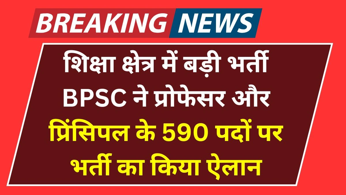 BPSC द्वारा प्रोफेसर और प्रिंसिपल के 590 पदों पर निकली यह भर्ती बिहार के उच्च और तकनीकी शिक्षा संस्थानों में करियर बनाने का एक शानदार मौका है। उच्च वेतनमान, स्थायी नौकरी और प्रतिष्ठित पद इसे और भी खास बनाते हैं। ऐसे उम्मीदवार, जो योग्य और इच्छुक हैं, उन्हें चाहिए कि वे समय पर आवेदन प्रक्रिया पूरी करें और इस अवसर का लाभ उठाएं।