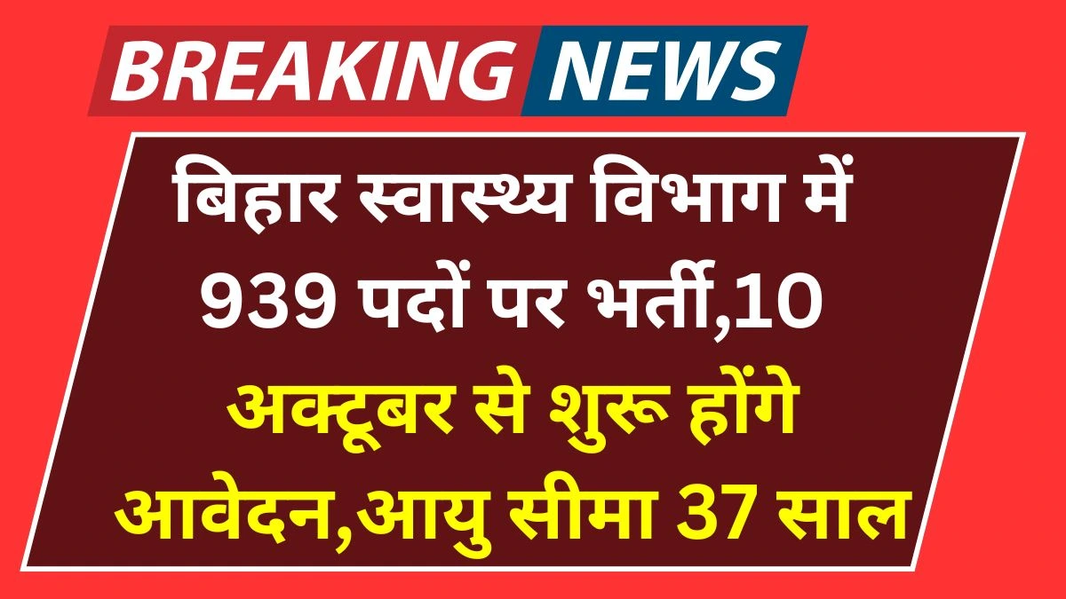 Dental Hygienist Recruitment: बिहार स्वास्थ्य विभाग में 939 पदों पर भर्ती,10 अक्टूबर से शुरू होंगे आवेदन, अधिकतम आयु सीमा 37 साल
