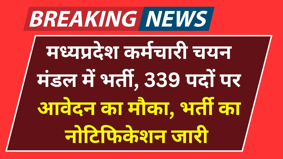 MPESB Recruitment 2025: मध्यप्रदेश के युवाओं के लिए नौकरी का बड़ा अवसर सामने आया है। मध्यप्रदेश कर्मचारी चयन मंडल (MPESB) ने ग्रुप-2 सब ग्रुप-3 के तहत विभिन्न पदों पर भर्ती का नोटिफिकेशन जारी किया है। इस भर्ती के जरिए कुल 339 पदों पर योग्य उम्मीदवारों की नियुक्ति की जाएगी। इच्छुक उम्मीदवार बोर्ड की आधिकारिक वेबसाइट पर जाकर ऑनलाइन आवेदन कर सकते हैं। आवेदन प्रक्रिया पहले से शुरू हो चुकी है और उम्मीदवारों को निर्धारित समयसीमा के भीतर अपने फॉर्म भरने होंगे।